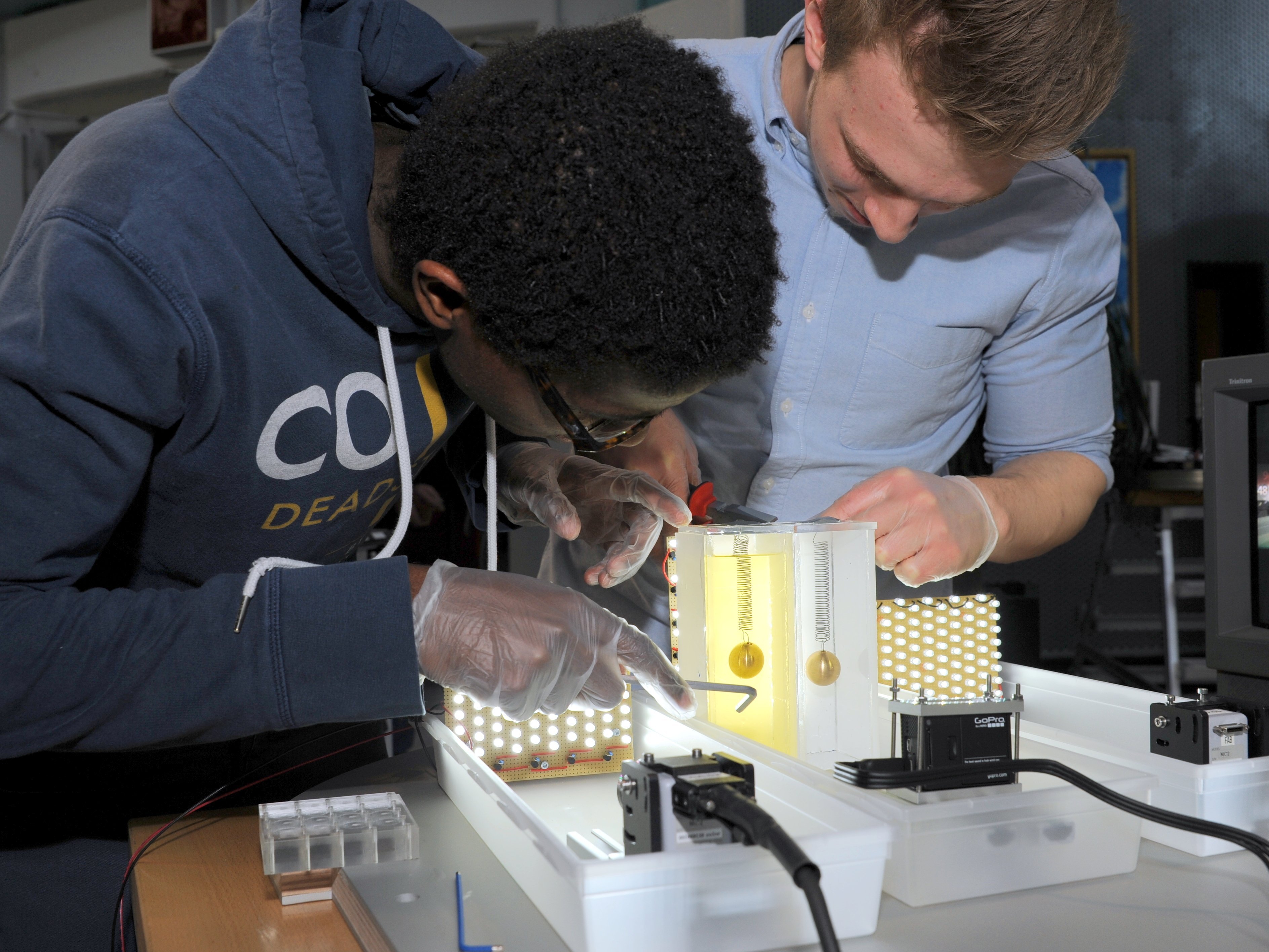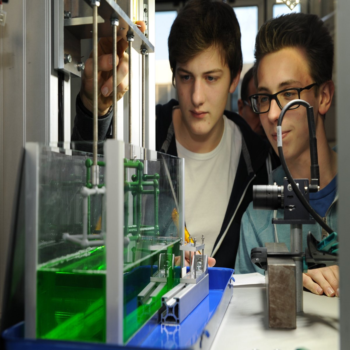Drei Monate lang tauschten 12 Bremer Schüler im Alter von 17 bis 18 Jahren einmal wöchentlich ihr Klassenzimmer gegen einen Laborplatz im Bremer Fallturm am ZARM. Hier entwickelten sie Experimente zum Verhalten von Flüssigkeiten im Weltraum.