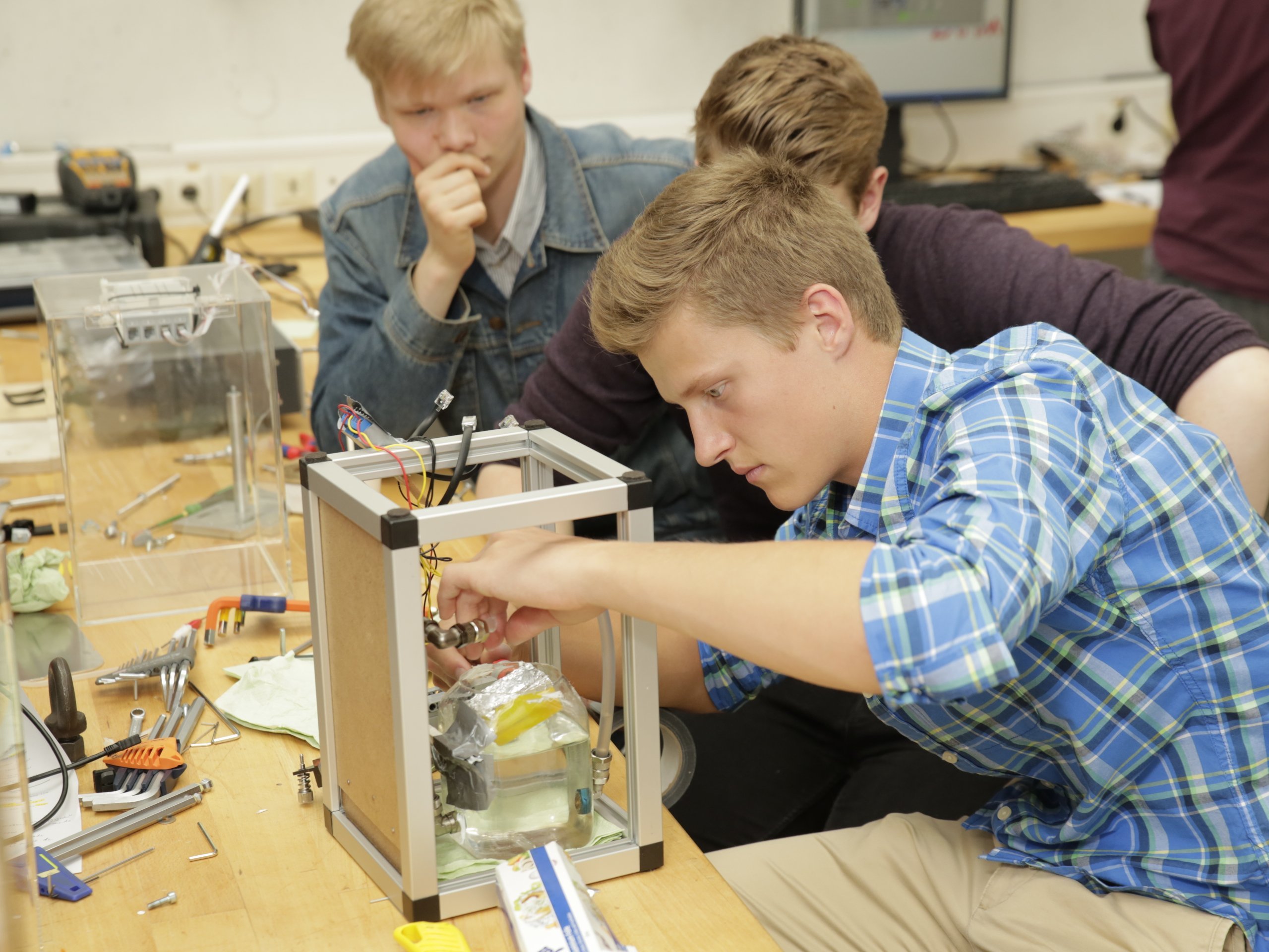 Three school teams from the Gymnasium Vegesack, the International School of Bremen (ISB) and the integrated school from Osterholz-Scharmbeck (IGS-OHZ) were rewarded for the long and intensive work on their experiments today.