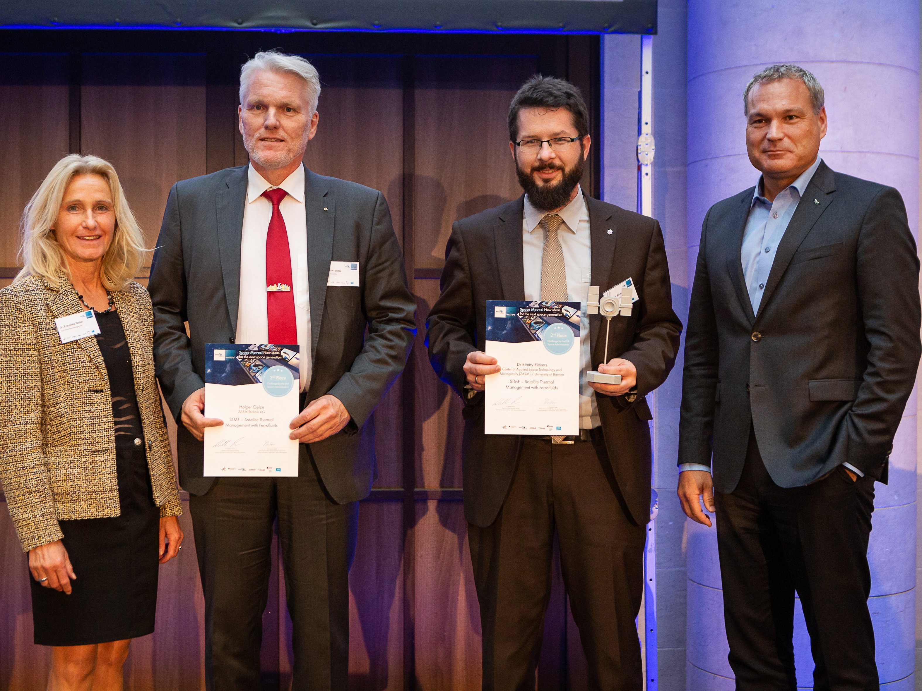 Am 3. Juli 2019 wurden in Berlin die Gewinner des INNOspace-Masters-Wettbewerbs ausgezeichnet. Mehr als 250 Unternehmen, Start-ups, Universitäten und Forschungseinrichtungen aus 17 europäischen Ländern sind dem Aufruf gefolgt, zwölf wurden in die Endrunde des Innovationswettbewerbs gewählt. Darunter auch ein Team aus Wissenschaftlern des Zentrums für angewandte Raumfahrttechnologie und Mikrogravitation (ZARM) der Universität Bremen und Ingenieuren der ZARM Technik AG. Gemeinsam haben sie ein Konzept zur Entwicklung und Produktion eines Systems vorgelegt, das über einen magnetisch induzierten Flüssigkeitstransport die Wärmeregulierung auf Satelliten ermöglicht. Damit können in Zukunft die durch konventionelle Wärmeaustauschpumpen erzeugten Vibrationen vermieden werden, was z.B. für Kameras auf Erdbeobachtungssatelliten relevant ist und auch für Forschungssatelliten mit sensitiven Versuchsaufbauten einen großen Fortschritt bedeutet.