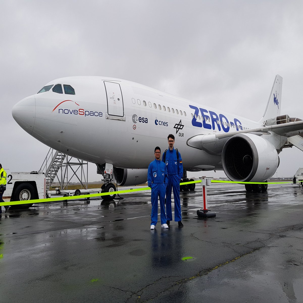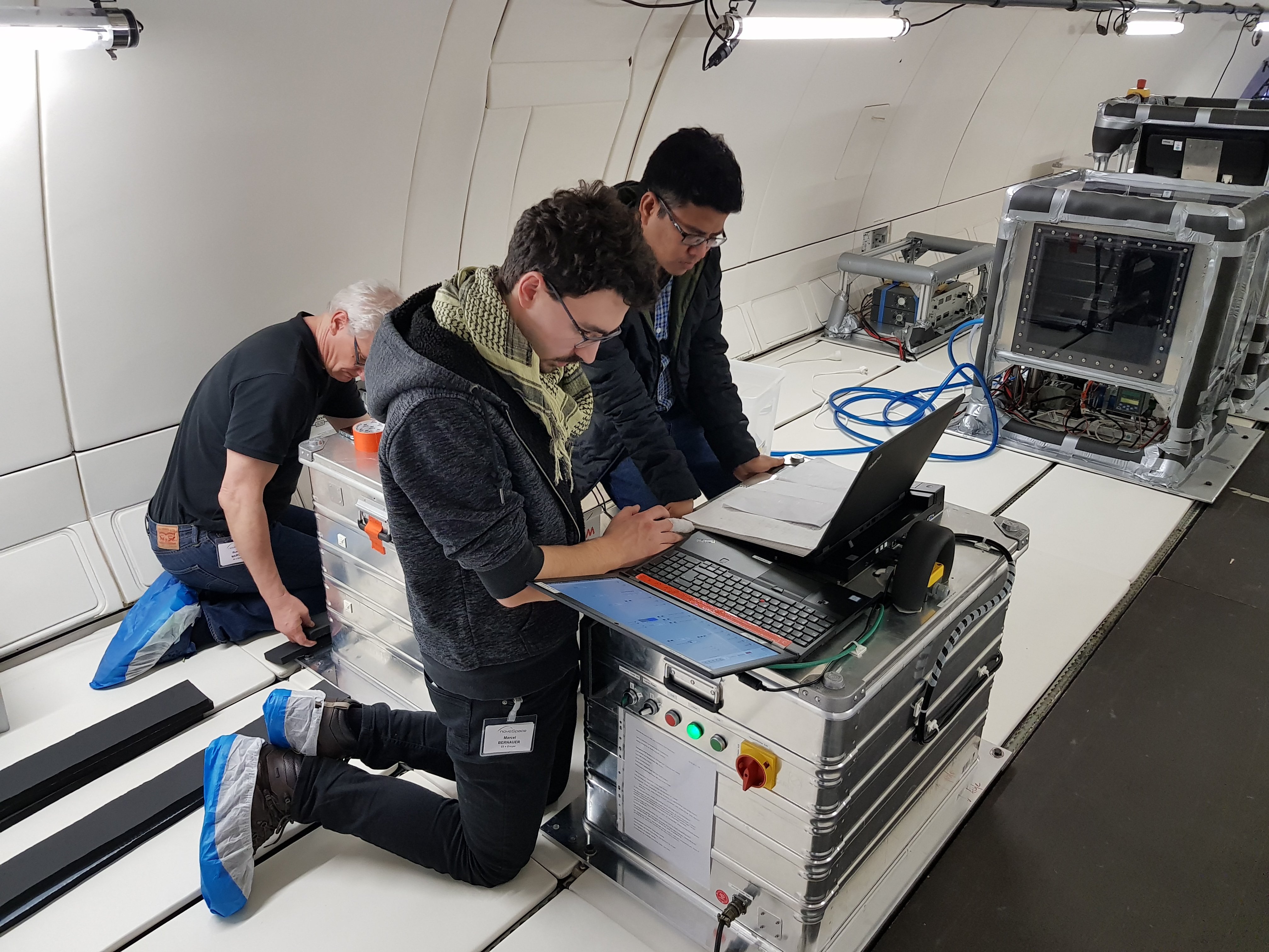 The apparatus, developed by ZARM scientists, was successfully tested during the 33rd parabolic flight campaign of the German Aerospace Center (DLR) Space Administration from 12 to 14 March 2019 and proved its full functionality for liquid-gas separation. On three consecutive flight days, the Airbus 310 ZERO G flew over the Atlantic with more than 90 individual parabolas from Bordeaux in France, enabling the scientists to fly in weightlessness for 22 seconds each - an experimental environment that posed a challenge not only for the test apparatus, but also for the scientists who were on board and had to carry out the experiment in the air. The human body reacts immediately to the phases of reduced gravitation (weightlessness) when the plane goes into free fall, and also reacts to the phases of increased gravitation that occur at the beginning and end of the parabolas. Therefore, it was all the more important for the ZARM crew to prepare well for the parabolic flights. This included defining a clear division of tasks within the four-man team, practicing the steps to control the experiment, monitoring the implementation of the previously defined test parameters and ensuring the technical readiness of the experiment setup and data collection.
