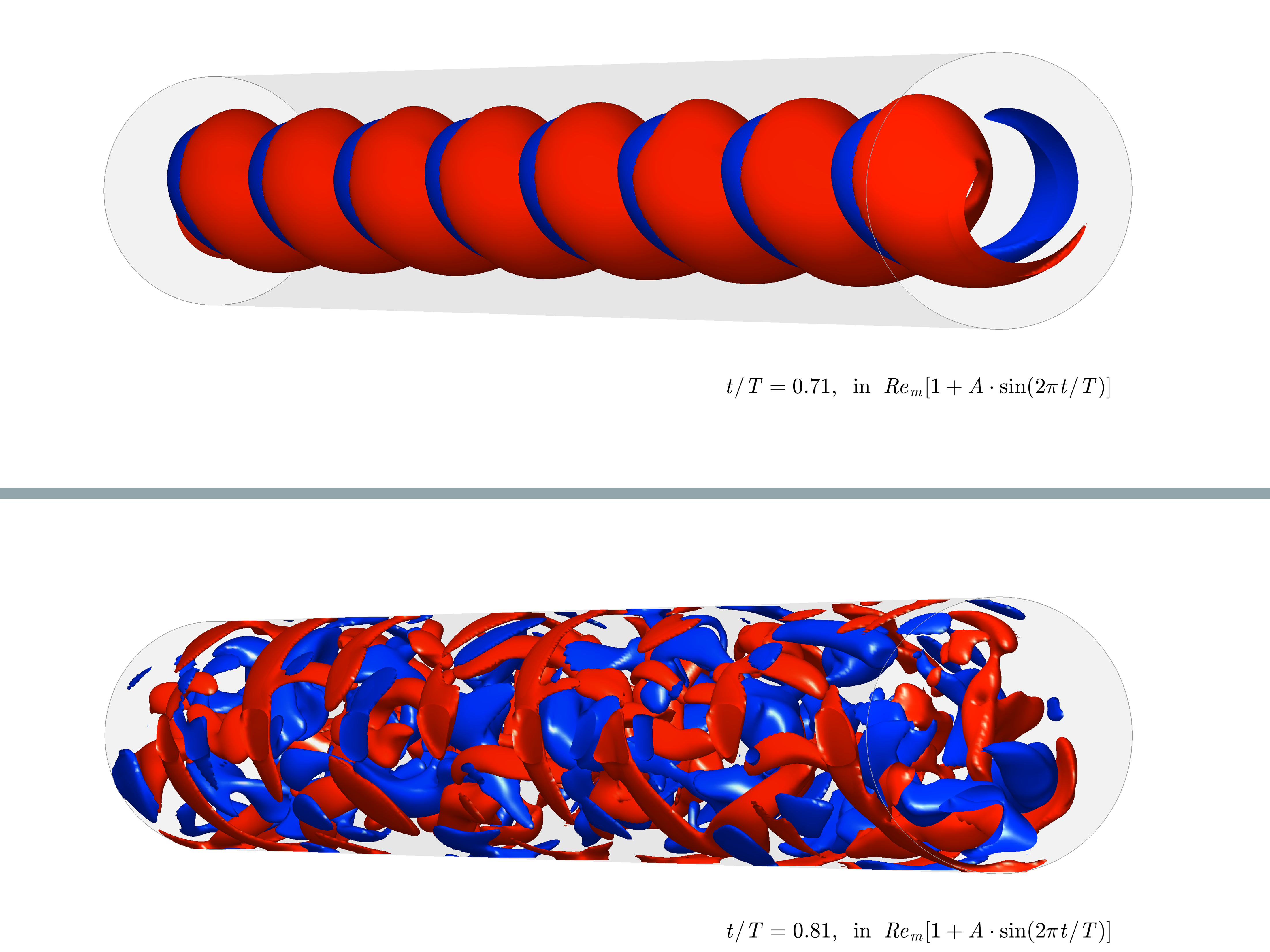 "Pulsating flows through tubular geometries are laminar provided that velocities are moderate." Thus begins the summary of the scientific work, which has now been published in one of the world's most renowned scientific journals. It means that no turbulence is created in a liquid if it is pumped sufficiently slowly through a pipe. In general, pulsating flows are more susceptible to turbulence than continuously flowing flows, but it has been assumed until now that no turbulence is created in the human circulatory system due to the low speed and high viscosity of the blood. Duo Xu, on the other hand, has now proven that only in ideal circumstances a turbulence-free flow behavior is always achieved. The central finding of the research team is that pulsating flows react very sensitively to geometric disturbances and thus become turbulent even at a lower flow velocity than would be the case with a non-pulsating, constant mass flow. Applied to the human blood stream, this means that turbulence occurs much more frequently than would be expected on the basis of classical fluid mechanics theory, since curves, unevenness or even stenoses - e.g. due to arteriosclerotic lesions - often occur in the human bloodstream.