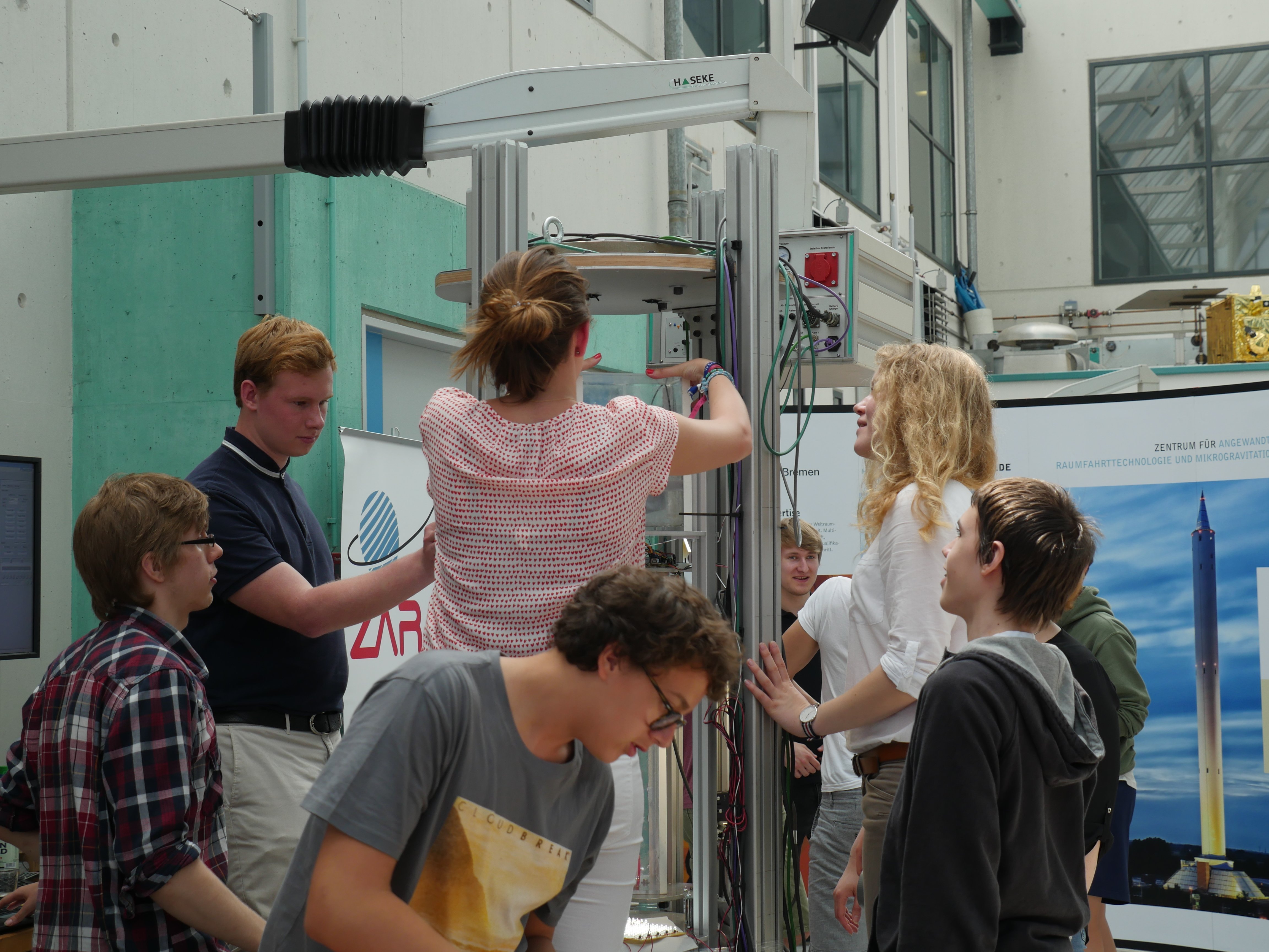 Drei Schulteams des Gymnasiums Vegesack und der International School Bremen bereiten sich auf ihren Endspurt vor. Seitdem sie im November letzten Jahres von einer Jury für das DroPS-Projekt (Drop Tower Project for School Students) ausgewählt wurden, arbeiten sie darauf hin ihr eigenes Experiment im Bremer Fallturm durchzuführen. Am 6. Juni 2016 werden sie in der Laborhalle des Zentrums für angewandte Raumfahrttechnologie und Mikrogravitation (ZARM) der Universität Bremen ihre Experimentaufbauten in eine Fallkapsel integrieren und diese dann für 4,74 Sekunden der Schwerelosigkeit aussetzen.