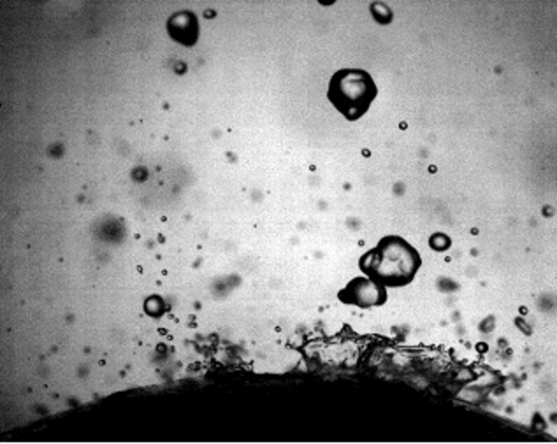 The general aim of the study is to better understand the hydrodynamics and heat transfer associated with spray impact onto a heated target and to improve the modeling of spray cooling. The spray impacting onto a rigid substrate creates on it a thin fluctuating liquid film. The flow in this film is influenced by the waves, craters, uprising sheets and jets, generated by drop impacts (Fig. 1). The heat transfer in this region is mainly determined by the convection in the liquid film, evaporation and conduction in the rigid target.